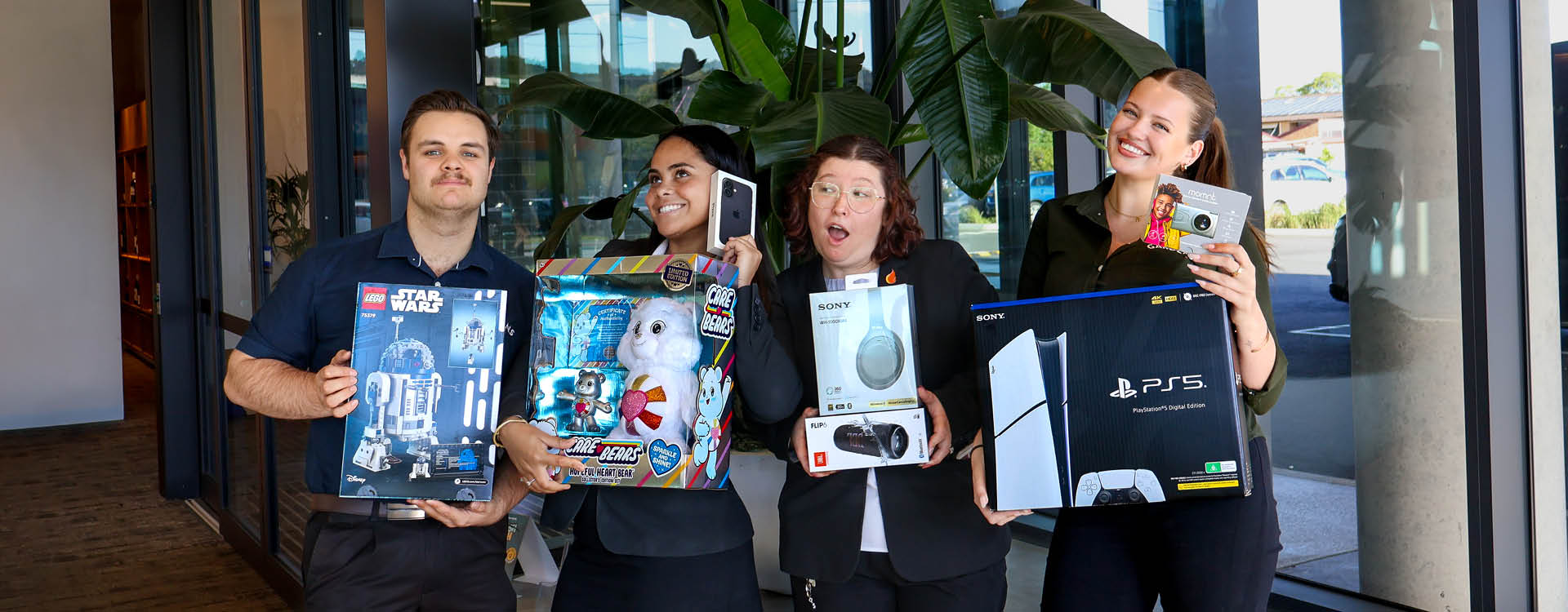 Our foyer is packed with over $10,000 in toys and tech ready to be won.